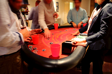 Chaque invité recevra un gobelet de casino rempli de jetons qui lui permettra de jouer et de miser sur les différentes tables de jeux (sans enjeu d'argent).
